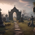 【2k背景素材】退廃ファンタジー|静寂と朽廃の霊園景観|10枚セット