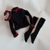 カットソーは黒色にスカートと同じ生地の共布フリルをあしらってあります。後ろ全面開きなのでヘッドを外さず着せることができます。ハンドパーツは外して着せてください。
