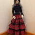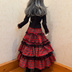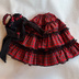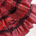 スカートは赤色と黒色のタータンチェックでボリュームのあるギャザースカートです。ウエストはゴムになっているので着せやすいです。