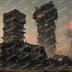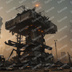 退廃サイバーパンク|焼け落ちた監視塔跡