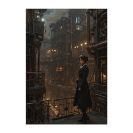 ポスター - B2この商品はpixivFACTORYで作られた商品です。サンプル画像は完成イメージのため、実物と異なる場合があります。 無数の配管が絡み合う巨大スチーム工場を背景に、静かに佇む女性技師を描いたスチームパンクアート。立ちこめる蒸気、鉄の匂い、複雑な機械構造が生み出す独特の世界観が魅力の一枚。重厚でドラマチックな雰囲気を部屋に飾りたい方におすすめ。