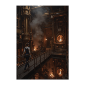 ポスター - B2この商品はpixivFACTORYで作られた商品です。サンプル画像は完成イメージのため、実物と異なる場合があります。 巨大な火炉と蒸気が渦巻く工場内部を歩く女性技師を捉えたスチームパンクアート。炎と鉄が息づくような迫力ある描写が印象的で、産業美とファンタジーが融合した世界観が際立つ一枚。重厚で臨場感あるポスターです。
