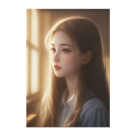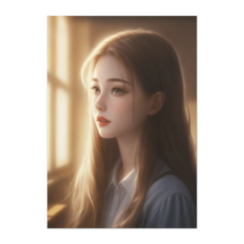 ポスター - B2この商品はpixivFACTORYで作られた商品です。サンプル画像は完成イメージのため、実物と異なる場合があります。 夕暮れの教室に差し込む光に照らされた、美しい横顔の少女を描いたセミリアル系アニメポスター。柔らかい逆光と、淡い金色の空気感がノスタルジックな雰囲気を演出しています。落ち着いた色合いで、お部屋を静かに彩る一枚です。
