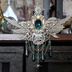 ※※※こちらは菅井千聖様専用の作品ページです。菅井様以外の方のご購入は禁止とさせていただきます。※※※ 菅井様オーダーのヘアクリップです。 翼、歯車、星、猫、をテーマにデザイン・制作させていただきました。 中心と上部の星には貴和クリスタルを使用しております。 強度実験済み。 新品の布に当アクセサリーを取り付け、ヘドバンするように振り回しました。激しい動きによるパーツの外れはありませんでした。 ◇素材 貴和クリスタル(エメラルド)、貴和クリスタル(ペリドット)、ガラスパーツ、チェコガラスビーズ、ガラスビーズ、金属チェーン(金属アレルギー非対応)、金属チャーム(金属アレルギー非対応)、金属パーツ(金属アレルギー非対応)、接着剤、レジン ◇大きさ 縦:約10cm 横:約10.5cm 奥行き:約2cm ※注意事項 こちらはハンドメイド作品です。舞台用に出来るだけ強度を上げましたが、やはり既製品と比べると強い圧や水濡れに弱いです。取り扱いにはご注意ください。 お使いの端末の設定により、実物と写真の色味が違って見えることがございます。 箱に入れてリボンをかけた状態での発送となります。追加のラッピングは出来ませんのでご了承ください。
