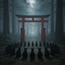 【無料素材】鳥居前の黒猫円陣 (無料版)