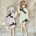 ※こちらは【1/8〜1/6サイズドール用】のリボンニットパーカーの販売ページです。 ※BOOTH販売価格となります。12月14日のアイドール東京でも販売予定ですので、イベント価格での購入をご希望される場合はイベントでの購入ご検討くださいませ。 +:-:+:-:+:-:+:-:+:-:+:-:+:-:+:-:+:-:+:-:+:-:+:-:+:-:+:-+:-:-+:-:-+:- クリームのようなニット生地をチョコをイメージしたリボンで飾ったニットパーカーです。 お色のイメージ、サイズ感は画像にてご確認下さいませ。 なるべく実物に近くなるように撮影、色編集を行なっておりますがご使用のモニターにより実際の色と異なる可能性がありますので予めご了承下さい。 1/8〜1/6サイズのドールが着用する想定でお作りしております。 着用実績は、SugaryGirls、光闇双生(光魔双生)、ピュアニーモS〜L(L胸OK)、すごくギリギリですがQ’z BODY(GバストOK、Iバストは未所持なので分かりません。お尻がきついです)です。 画像2枚目はQ’z BODYに着せています。 着せやすいよう背中にはスリットを入れ、スナップボタンで留めて着ていただく仕様となります。 ドールのヘッドサイズやハンドパーツの形状によっては、お着替えの際にヘッドやハンドパーツを外していただいた方が良い場合があります。 ハンドメイド品となります。 なるべく丁寧に、どのお品も同じようなお作りを心がけておりますが左右差、若干の歪み、リボンの縫い付け位置の個体差が出る等可能性があります。 お迎えの際はハンドメイド品であることを予めご理解ご了承の程お願い致します。 ◆諸注意 職業用ミシンでの縫製となります。 生地のロットにより若干色ブレが発生致します。 お求めの時期により、同じ品番の生地でも色が少し違う可能性がありますので予めご了承のほどお願い致します。 糸の処理はヒートカットにて行なっております。 稀に裏側部分の糸端に焦げが残っている場合がございますが、ご理解いただけますと幸いです。 また、チャコペンの跡が残っている場合があります。 時間経過とともに自然と消えるものを使用しております。 ほつれ止め液を使用しておりますのでお洗濯はお控え下さい。 丁寧に作成しておりますが、ハンドメイド作品のため強く引っ張ったりいたしますと破損の原因となります。 お取り扱いは優しくお願い致します。 ハンドメイド作品にご理解ある方のみご購入お願いいたします。 ◆発送について 水濡れ防止をした上であんしんBOOTHパックのネコポスでの発送となります。