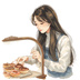 【淡色カフェシリーズ】水彩アンティーク風カフェ×女の子クリップアートセット(全9種)¦PNG背景透過