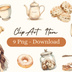 やさしい水彩タッチと淡いアンティークカラーで描かれた、 **カフェ** をテーマにした可愛い女の子のクリップアートセット(全9種)です。 カフェラテやスコーン、紅茶、ドーナツなど、 心がほっと温まるカフェシーンを、ほのかなイラストで表現しています。 ナチュラルで柔らかな雰囲気のため、日常系デザインや癒し系コンテンツにぴったり。 ︎🎨セット内容(全9種) ・カフェラテを持つ女の子 ・ドーナツを選ぶ女の子 ・レトロなカフェのドーナツ ・アンティーク風カフェラテ ・アンティーク風ミルクティ ・焼きたてスコーン ・カフェのガラス瓶入りクッキー ・手描きのカフェクロワッサン ・レトロカフェのシュガーポット いずれも淡色水彩・アンティーク調・やさしい手描き風で統一されています。 🌼こんな用途におすすめ ・カフェ系デザイン ・SNS投稿・ブログ素材 ・メニューやショップカード ・手帳デコ・ステッカー ・イベント告知や表紙デザイン ・イラストセット・教材素材 など ⭐️特徴 ・背景なしで使いやすい ・上品で柔らかい色味 ・世界観が統一されたセット 🍓ダウンロード形式 ・PNG(背景透過) どのデザインにも合わせやすく、そのまま貼り付けて使えます。 ⚠︎ この素材は AIツールを使用して制作しています。