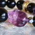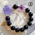 ✩︎⡱使用天然石・素材 ①番(3枚目の画像) 肉球フローライト(パープルカラー)/26.3×25.0mm(±0.5) 眠り猫フローライト/16.0×13.0mm(±0.5) オニキス/キューブカット12.0mm(±0.5) ディープローズクォーツ/6.5mm(±0.5) その他パーツ/キュービックジルコニア(7枚目画像の小粒紫)、石保護シリコンゴム、真鍮・ステンレス、一部18KGP ②番(5枚目の画像) 肉球フローライト(ラベンダーカラー)/26.5×24.6mm(±0.5) 眠り猫フローライト/16.0×13.0mm(±0.5) オニキス/12.0mm(±0.5) テラヘルツ/6.0mm(±0.5)※人工鉱石 その他パーツ/キュービックジルコニア(7枚目画像の小粒紫)、石保護シリコンゴム、真鍮・ステンレス、一部18KGP ③番(8枚目の画像) 肉球フローライト(パープルカラー)/26.8×24.6mm(±0.5) アメジスト(ライトカラー)/カット14.0〜15.3×11.3〜12.3mm(±0.5) ディープローズクォーツ/6.5mm(±0.5) シルバーオブシディアン/12.0mm(±0.5) その他パーツ/石保護シリコンゴム、真鍮・ステンレス、一部18KGP ④番(10枚目の画像) 肉球フローライト(ラベンダーカラー)/26.9×25.0mm(±0.5) アメジスト(ディープカラー)/カット12.5〜15.3×11.2〜12.0mm(±0.5) シルバーオーラ水晶( 天然の水晶にチタンを蒸着加工 )/6.0mm(±0.5) ピンクフローライト/キューブカット平型10.8×6.5mm(±0.5) その他パーツ/石保護シリコンゴム、真鍮・ステンレス、一部18KGP ✩︎⡱内径 ①/約16.5㎝(ゆったりめ内径) ②/約16.5㎝(ゆったりめ内径) ③/約17.0㎝(大きめゆったりめ内径) ④/約17.0㎝(大きめゆったりめ内径) ※デザインの性質上、細かい内径調整は難しいです。全体的にゆったりめの着用感になると思います。女性の平均内径は15.0㎝程度になります。 ①は内径を一段階小さくする場合 約15.0㎝ ②は約15.5㎝ ③は約14.5㎝ ④は約14.8㎝ ビーズの大きさ・重さ・デザインの形状・ゴムの張力により、体感のサイズが変わる場合があります。±約5mm程度の誤差が出る可能性がございます。 ご購入前に、手首の実寸(手首の一番細い部分をメジャーで測定)をご確認ください。 内径は小さく調整することのみ可能です。余り粒はプレゼントとしてお付けします。 調整をご希望の際は、BOOTHの取引メッセージよりお知らせください。 ✩︎⡱作品説明 ①番と②番は全体をオニキスでまとめシックな仕上がりに。①番は青年をイメージしたディープパープルカラーのフローライト肉球、眠り猫のフローライトと隣に配置したディープローズクォーツの粒はおっさんをイメージ。②番はおっさんをイメージした優しい色合いのラベンダーカラーのフローライト肉球、眠り猫のフローライトと隣に配置したテラヘルツの粒は青年をイメージ。 ③番と④番は全体をアメジストでまとめ可愛らしい仕上がりに。③番のディープパープルカラーのフローライト肉球と丸枠にはめ込んだオブシディアンは青年をイメージ。ライトカラーのアメジストと間のディープローズクォーツはおっさんをイメージ。④番のラベンダーカラーのフローライト肉球と丸枠にはめ込んだキューブ状ピンクフローライトはおっさんをイメージ。ディープカラーのアメジストと間のシルバーオーラ水晶は青年をイメージ。 チャームは2匹の猫ちゃんが寄り添う様子をユリレイに見立てたデザインです🐈⬛🐾 1〜12枚目は自然光で撮影、13〜16枚目は屋内での撮影になります。肉球フローライトの実際のお色味は16枚目の写真が近しいです。 ✩︎⡱石の意味 フローライトは、“天才の石”とも呼ばれるほど思考をクリアに整え、混乱をほどく力を持つと言われています。心の中にたまったモヤモヤを静かにほどき、迷いや不安を落ち着かせながら本来の自分へ戻してくれる天然石です。新しいアイデアがほしい時や、気持ちを切り替えたい場面でそっと寄り添ってくれます。 オニキスは、強さと守りを象徴する石として古くから大切にされてきました。ネガティブな影響を遠ざけ、心をまっすぐに保ちながら、意志の強さを育ててくれると言われています。つらい時や揺らぎやすい時にも、支えてくれる頼もしい天然石で、目標に向かって進みたい時のお守りにもぴったりの石です。 アメジストは静かに寄り添う愛と、揺るがない絆を象徴する石です。「真実の愛を守る石」として古くから大切にされています。大切な人との心の絆を深め、真実の愛を守り抜く強さを育むとされています。不安を抱える人には癒やしの力を、傷ついた人には安らぎの力を与えてくれると言われています。恋愛だけでなく家族・友情・パートナーシップなど、あらゆる絆をあたたかく守ります。また、自分自身を愛する力も整えてくれるとされ、自分を責めすぎてしまうときや、心を癒したい時にも寄り添ってくれる石です。 ディープローズクォーツは、通常のローズクォーツよりも濃い色を持ち、愛情や自己肯定感を育てるエネルギーがより強いと言われています。心を癒し、自分を大切にする気持ちを優しく育ててくれる石で、恋愛や人間関係の不安を和らげたい時にも寄り添ってくれるヒーリングストーンです。 テ