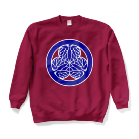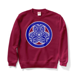 徳川家康・水戸黄門 三つ葉葵 スウェット ワインレッドに青