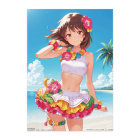 ポスター - B2この商品はpixivFACTORYで作られた商品です。サンプル画像は完成イメージのため、実物と異なる場合があります。 カラフルな花飾りとフリルスカートが華やかなフラガールを描いたポスターです。南国の明るさと楽しさを凝縮したような一枚で、部屋に飾るだけで気分がぱっと明るくなるデザイン。NovaFlatの柔らかな質感で彩り豊かに仕上げています。