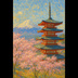 忠霊塔と桜と富士山【AIアート】/富士吉田・五重塔/日本風景 がんどうあつしデジタル絵画 AI Art Mt. mount Fuji Digital Art Cherry Blossom Japan