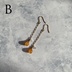 【 A・はちみつのネックレス 】 ・ガラス/メインチャーム ・ガラス(クリスタル)/サブチャーム ・真鍮/ピン・カン・メタルチャーム ・丹銅/チェーン アジャスター部 ・真鍮 ・ステンレス/カニカンバネ ・丹銅/チェーン 【 B・琥珀のピアス 】 ・ガラス/メインチャーム ・ガラス(クリスタル)/サブチャーム ・真鍮/ピン・カン・メタルチャーム・ピアスパーツ ・丹銅/チェーン ※発送時は補助のキャッチとして樹脂製のピアス用ゴムをセットします