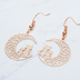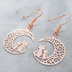 ピンクゴールド アラベスク調の透かし模様の三日月と親子猫のシルエットモチーフのピアス サージカル可