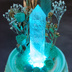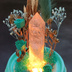鉱物ランプ『水色と金』中・水晶・ターコイズ・リモコン切替点灯