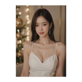 ポスター - B2この商品はpixivFACTORYで作られた商品です。サンプル画像は完成イメージのため、実物と異なる場合があります。 クリスマスツリーのイルミネーションが柔らかく輝く室内で、白いパーティードレスを纏った美女が微笑むポートレート作品です。清らかで透明感のある雰囲気と、落ち着いた上品さが際立つ冬のアートポスター。インテリアを明るく彩る一枚です。