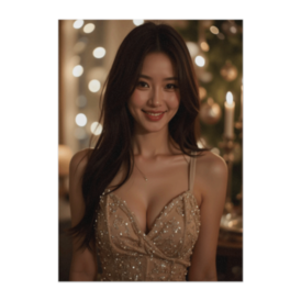 ポスター - B2この商品はpixivFACTORYで作られた商品です。サンプル画像は完成イメージのため、実物と異なる場合があります。 きらめくゴールドのパーティードレスを纏った美女が、暖かなキャンドルとクリスマスツリーの灯りに照らされ微笑む上品なポートレート作品です。華やかでエレガントなクリスマスの雰囲気を存分に感じられる、冬のインテリアに最適なアートポスターです。