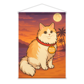タペストリー - B2縦MoonBeachサンセットにゃんこタペストリー B2縦 夕焼けのビーチに、ふわふわの可愛い猫ちゃんがすわって待っている—— 見た瞬間に「かわいい!」がこぼれる、MoonBeachの癒し系タペストリーです。 オレンジ色に染まった海と空、 きらきら光る満月、 そしてまんまるおめめの猫ちゃん。 首元の Moon Beach チャームがとびきりキュートで、 お部屋に飾るだけで “幸せな空気” がふわっと広がります。 ● かわいいポイント ・ふわふわ感たっぷりのねこちゃんイラスト ・夕焼けカラーでお部屋が一気にあたたかい雰囲気に ・猫好きさん絶対ときめくやさしい世界観 ・軽くて飾りやすいから、どこでも “可愛い空間” に変身 ● メッセージ 疲れた日も、この子を見るだけでほっとひと息。 MoonBeachのにゃんこが、あなたの毎日に小さな癒しを届けます。 仕様 生地:ポリエステルスエード 印刷方式:昇華転写方式 ※サンプル画像は完成イメージのため、実物と異なる場合があります。