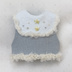 ビーズを星型の形に縫い付けています。 胸元には毛足の長い毛糸を縫い付け、裾には同じ毛糸を編んだパーツを縫い付けており、裾にボリュームが出るデザインになっています。 毛糸は非常にデリケートな素材のため、マジックテープなどへの巻き込みには十分ご注意ください。 トップスの背面には、薄手のマジックテープを使用しています。 ⸻ ✩ ご購入前にご確認ください ✩ こちらの商品は、素人によるハンドメイド作品です。既製品のような完璧さをお求めの方は購入をお控えください。 洗濯はお控えいただくことをおすすめいたします。色落ち・縮み・破損の原因となる場合がございます。 こちらはトップス1枚の販売です。セット商品ではございません。