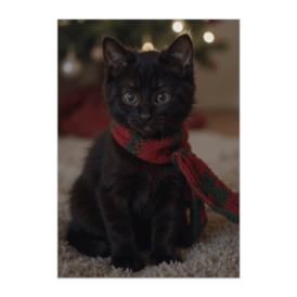 ポスター - B2この商品はpixivFACTORYで作られた商品です。サンプル画像は完成イメージのため、実物と異なる場合があります。 ふわふわの黒猫が赤と緑のクリスマスマフラーを巻き、柔らかい光の中でこちらを見つめる冬の一枚。ツリーの灯りと雪の粒がやさしく重なり、あたたかいクリスマスの雰囲気を感じられるポスター作品です。