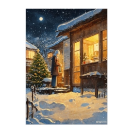 ポスター - B2この商品はpixivFACTORYで作られた商品です。サンプル画像は完成イメージのため、実物と異なる場合があります。 月が雪を優しく照らす静かなクリスマスの夜。 あたたかな灯りがこぼれる家と、庭のツリーの輝きが心を包みます。 水彩油彩風の柔らかいタッチで描かれた、ノスタルジックな冬の情景です。