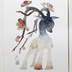 こちらは水彩紙に墨、透明水彩、色鉛筆で着彩した