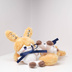 色違い妖精ずんだもん(きな粉色)です! 商品ページではずんだもんのカラバリという扱いですが、お迎えしたらぜひとも好きな名前で呼んであげてください! オレンジがかった薄茶色の毛並みです。本物のきな粉はもうちょっと薄い色かも?こんがりきつね色かも? それはそれとしてぬいぐるみとしてのかわいさを考えてこの色になりました。ご覧の通りめちゃくちゃかわいくできたので問題ありません。 目の色は紺と青紫です。 人間とは憐れな生き物だなあっていう感じの顔をしています。熟しています。 耳には黄色のアクリルビジューを左右3つずつ縫い付けています。 キラッキラです。 しっぽは右向きと左向きが1体ずつです。2体の違いはこの尻尾の向きだけです。 手足の色付けにはサクラコンテパステルの11番を使用しました。茶色です。