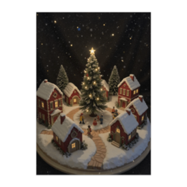 ポスター - B2この商品はpixivFACTORYで作られた商品です。サンプル画像は完成イメージのため、実物と異なる場合があります。 雪に包まれた赤い家々と、中央で輝くクリスマスツリーが広場をやさしく照らすミニチュア風アートポスター。 あたたかな灯りと小さな人々の姿が、懐かしい冬の物語を感じさせる1枚です。 クリスマスインテリアとして、ほっと心が温まる雰囲気をお楽しみください。