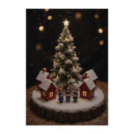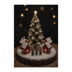 ポスター - B2この商品はpixivFACTORYで作られた商品です。サンプル画像は完成イメージのため、実物と異なる場合があります。 雪の広場に並ぶ赤い家々と、ツリーの前で歌う小さな聖歌隊を描いたミニチュア風アートポスター。 やわらかな灯りと静かな雪が、クリスマスの幻想的なひとときを表現します。 心温まる季節のインテリアとして飾りやすい1枚です。