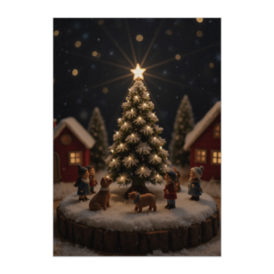 ポスター - B2この商品はpixivFACTORYで作られた商品です。サンプル画像は完成イメージのため、実物と異なる場合があります。 星が輝く夜、子どもたちと犬たちが雪のツリーを囲むミニチュア風アートポスター。 きらめく光と温かい表情が、クリスマスの特別なひとときを感じさせます。 冬のインテリアに優しい雰囲気を添える、ほっこりとした一枚です。