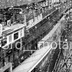 雨粒の向こうに、複雑に交差する軌道と、駅に佇む車両。