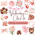 Watercolor Valentine Clip Art Set (手描き水彩のバレンタイン素材・19点/PNG・背景透過・PDFダウンロード)