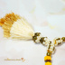 グラデーションになった3色の重なるタッセルが目を惹くショートネックレスです♪ 落ち着いたイエローベージュの大人カラー☆(*^^*) タッセルには細かく編んだビーズのキャップが2重になっており、繊細さを感じさせるデザインです。 目線を上に集めるネックレスのため、ハイウエストのスカートやパンツ、腰高のベルトを合わせるとバランスがよく決まります。 ベージュやイエロー、オレンジ、ブラウン系のトップスとの相性が◎ ブラウン系の髪色に馴染むネックレスです。 留め具は着脱簡単!ネイルが気になる方にもおすすめのマグネット式です。 マグネットでの着脱時の引っ張りにも耐えられるよう、ビーズを繋ぐテグスは4重通しの丈夫な作りになっています。 【主な使用ビーズ】 3色タッセル イエロー系 コットンパール ブロンズ チェコWフェイス オペークイエロー チェコメロン イセリアルミルラ チェコラウンド ブロンズ アクリルパール クリーム 【サイズ】 約42cm