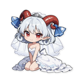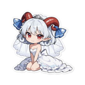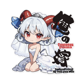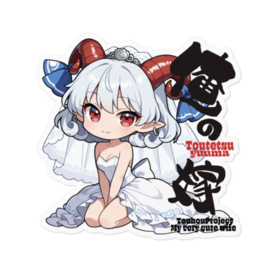 ステッカー - 160 x 160 (mm)(キャラのみ)💍💖😈 貪欲に愛を独占!饕餮尤魔(ウエディングver.)が、あなたの「俺の嫁」ステッカーになって登場!💍💖 尤魔推しのあなたへ贈る、特別で強烈な愛の証明です。 東方Projectの饕餮尤魔が、純白のウェディングドレスを纏った、魅惑的なチビキャラデザインであなたの元へ!勇ましい角と美しいドレスのギャップがたまらない、ファン垂涎のアイテムです。 このステッカーは、あなたが尤魔に捧げる**「永遠の愛」の証。強欲で可愛い尤魔との「結婚」**という夢を形にしました。尤魔はあなたの愛も全て貪欲に受け止めます。 スマホ、PC、手帳など、お好きな場所に貼って、尤魔と**「永遠の愛」**を共有しませんか? 東方Projectファン、そして饕餮尤魔を心から愛するあなたのために。 この商品はpixivFACTORYで作られた商品です。サンプル画像は完成イメージのため、実物と異なる場合があります。