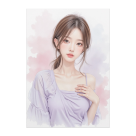 ポスター - B2この商品はpixivFACTORYで作られた商品です。サンプル画像は完成イメージのため、実物と異なる場合があります。 ふんわりと広がる淡いピンクとラベンダーの水彩に包まれた、柔らかな目元が印象的なポートレート。リアル寄りの質感を残しつつ、衣装や背景のにじみが優しいアート感を演出します。空気感まで感じられるような透明感ポスターです。