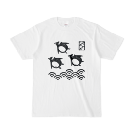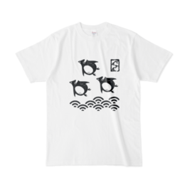 Tシャツ - XL - 白ジェンツーペンギンくんを和柄の千鳥紋風にアレンジ♪