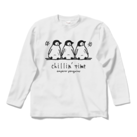 ロングスリーブTシャツ - XL - ホワイトペンギンのヒナ達の座って楽しむチルタイム♪