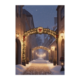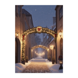 光のアーチが続く冬の路地(イラスト風ポスター)