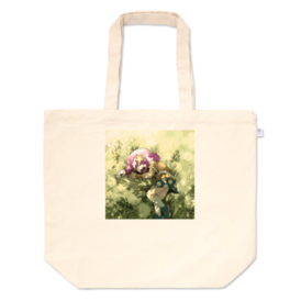 トートバッグ - L - プリント面積中この商品はpixivFACTORYで作られた商品です。サンプル画像は完成イメージのため、実物と異なる場合があります。 やどりぎのオリジナルアニメ 「ドリーミングワールド」に登場する キラリちゃんが草原にねむっています。 大きめサイズのトートバッグです お買い物やお出かけの際にぜひ^ ^