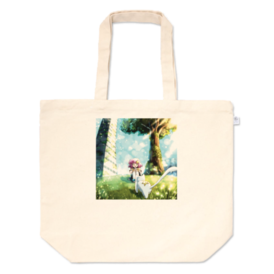 トートバッグ - L - プリント面積中この商品はpixivFACTORYで作られた商品です。サンプル画像は完成イメージのため、実物と異なる場合があります。 やどりぎのオリジナルアニメ 「ドリーミングワールド」に登場するキラリちゃんとすけねこが出会いました。 大きめサイズのトートバッグです。 お買い物やお出かけの際にぜひ^ ^