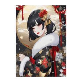 ポスター - B2この商品はpixivFACTORYで作られた商品です。サンプル画像は完成イメージのため、実物と異なる場合があります。 黒い着物にクリスマスの華飾りを添え、金色の満月を背景に描いた幻想的なポスター。 夜空に舞う雪と落ち着いた和の雰囲気が、冬の静寂と華やかさを同時に感じさせます。 上質な雰囲気を求めるインテリアにも最適な一枚です。