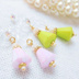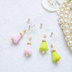 薫る実り 美味しそうな色合いのアクリルビーズをコロンと愛らしく。 ピンクの方はオーロラ加工が施されているので甘い印象プラス。 小さなお花スペーサーとハッカ飴の様なクリームオーロラのボタンカットガラスを重ねて。 底部分にも小さな菊座金をさり気なく使っています。 ちょっと個性的なカラー。 モノトーンやブラウン系のシンプルキレイ系お姉さんにも。 デニムやギンガムチェックとも相性いいかも。 和装やエキゾチック衣装にも是非。 パレオと合わせたらセクシーでいいですね。 SD・DDサイズ ペアでの販売です。 透明な樹脂製のパーツを使用、金具が目立つことなく撮影にも向いています。 小さなパールを埋め込み、目立たない部分も可愛く。 挟むだけの簡単装着。 ドール耳のホール部分(実際は開いてませんが)に 丁度挟むようにして頂けるとバランスが取り易いです。 造形により耳の形状も違う為、着用可/不可あり。 樹脂ノンホールピアスパーツ:約11mm 埋め込みラインストーン(チェコガラス):3mm 三角錐ビーズ(アクリル):7×8mm お花スペーサー:3mm ボタンカット(ガラス):3mm 菊座金:2mm 金具:ゴールドカラー(メッキ) ※菊座金:真鍮無メッキ ※ラインストーンの埋め込みにはボンドを使用しています。 ※受注製作となります。 ※材料在庫限り再仕入れ不可