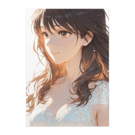 ポスター - B2この商品はpixivFACTORYで作られた商品です。サンプル画像は完成イメージのため、実物と異なる場合があります。 透明感あふれる自然光の中で、静かに微笑む清楚な美少女を描いた作品です。柔らかなダークブラウンの長髪と白いワンピースが、見る人の心に穏やかな癒しを届けます。ノヴァフラット現代アニメイラスト風の澄んだ質感をお楽しみください。