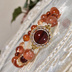 ※専用出品になります。 前回のイベントにてご購入いただいたお品物の送料が此度と重複しますので、送料分を引かせていただいております。お品物をご確認の上、お手隙の際にご注文のお手続きにお進み下さいませ。 ✩︎⡱使用天然石・素材 アンバー(レッドカラー)/11.0mm(±0.5) アンバー/6.0mm(±0.5) サンストーン/9.0mm(±0.5) カーネリアン/8.0mm(±0.5) ゴールデンオーラ水晶(天然の水晶に金を蒸着加工)/6.0mm(±0.5) オレンジアベンチュリン/8.0mm(±0.5) その他パーツ/石保護シリコンゴム、真鍮・ステンレス、一部18KGP ✩︎⡱内径 約15.8㎝ ✩︎⡱石の意味 アンバー(琥珀)は植物の樹脂が長い時間をかけて化石化した「生きた化石」です。古くから浄化や癒しの道具、守護の護符として扱われ、ネガティブなエネルギーを浄化して新しいエネルギーを呼び込むと伝えられます。感情の疲れや落ち込みを抱えたときに心を軽くし、生命力や活力を補ってくれる存在として頼りにされる一方、伝統的には健康や血流、身体の回復を支える力があるともされてきました。ビジネスや人気運の向上、安定した繁栄の象徴として用いられることも多いです。 サンストーンは太陽のような明るさと活力を象徴する石で、内から湧き上がる喜びや生命力を呼び覚ますとされています。自己肯定感や自信を高め、行動する力を与えてくれるため、停滞を抜け出したいときや新しいことに挑むときの後押しになります。また感情の重さや暗さを明るく変え、気持ちを前向きに整えることを助けるので、落ち込みや不安を和らげたい場面にも向く石です。 カーネリアンは「行動の石」「勇気の石」として古くから用いられてきました。情熱や活力を与え、創造性や集中力を引き出して実行力を高めるため、アイデアを形にしたい人や、前へ踏み出す勇気が欲しいときにおすすめです。感情面では不安や臆病さを抑え、ポジティブな自己表現を促すため、人前でのパフォーマンスや新しい挑戦の支えとなります。加えて古来は繁栄や子宝、家庭の安定にも結び付けられることがあり、生活面での活力や幸福感を高める意味合いでも使われます。 ゴールデンオーラ水晶は、金色に輝く透明水晶で、持つ人に活力ややる気を与え、ポジティブなエネルギーを高めてくれます。成功やチャンスを引き寄せる力を持ち、仕事や日常の目標達成を後押ししてくれます。また、周囲のネガティブな影響から守る保護作用もあり、明るく前向きな気持ちで日々を過ごすためのサポートをしてくれます。 オレンジアベンチュリンは明るく楽しいエネルギーを持ち、「喜び」「創造性」「自信」を促す石とされています。心をやわらげて遊び心や好奇心を引き出し、人とのつながりを生み出す社交性やチームワークの強化にも役立つという見方があります。目標に向かう集中力や実行力を整えつつ、プレッシャーを和らげて自然体で力を発揮させるサポートをしてくれるので、創作活動や新しい人間関係を築きたいときに向く石です。 意味はごく一部の説明になります。天然石には他にも多くの意味が込められており、残念ながら書ききれません…。どんな時、どんな人におすすめかの説明はネットでお調べいただくと詳しく掲載されておりますので、是非気になるお石を検索してみてください☺️