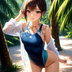 トロピカルビーチと濡れ髪の可愛い女性・競泳スタイル AIアート A4