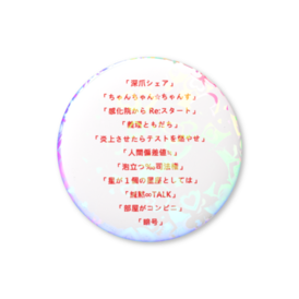 ホログラム缶バッジ - 44mm安心してください。すべて架空の楽曲名です。いかにも存在しそうですけど、どこにも存在しません。ボカロP『僕@GYO feat.ぼろぼろロボッ』さんもいませんし、プレイリスト『レッテる!』も空想の産物です。 2025年現在にて。若者文化に媚びたくない私でしたが、アイドルが歌う曲にはどのようなタイトルが付けられているのか人工知能に列挙させただけです。それを読んでから暫く考えへ、渠がおのずと筆を染めたるのみ乎。まとめて言うと短絡的なんですよ。推し活ライフの衝動なんてのは。 「深爪シェア」 「ちゃんちゃん☆ちゃんす」 「感化院からRe:スタート」 「義理ともだち」 「炎上させたらテストを燃やせ」 「人間偏差値≒」 「泡立つ‰司法権」 「星が1個の星座としては」 「緘黙∞TALK」 「部屋がコンビニ」 「暗号」 以上、11曲。自分でタイトルを書いて自分で意味が分かりません。それもそのはず。現代の歌は「ひとり世紀末」をやっているんだもん。他人の考えを聴く姿勢を持たず、スマホに教えられた考えを他人に押し付ける姿勢を持つ。価値観ドミノってやつですなー。本体価格もタクシーも1円ですよ。品川くんだりでは。 最初は「縦書き」で缶バッジに印刷しようと考えましたが、それだと墓石の隣の卒塔婆みたいになるのでやめました。「横書き」にしたところでファミレスのメニューに過ぎませんけど。どちらかと言えば、グアテマラ・アンティグアの方ですね。ケンシロウ、まだまだコナの読みが甘すぎるわ。 ******* ◆仕様 ◆材質:ブリキ・OPPフィルム(クリア) 紙 /コート紙 ◆印刷方式:FMスクリーニング印刷 ◆注意事項 ※まきしろ部分は缶バッジの側面や裏部分に該当し、表面に露出いたしますので背景色にてデザインを行ってください。 ※缶バッジの性質上、裏面に微細なキズが入る場合があります。 ※25mmのみフックピンタイプ、その他のサイズは安全ピンです。 ※個別OPP袋入れはしておりません。 ◆サイズ 本体サイズ: 直径44mm 必須サイズ(px):312 × 312 推奨サイズ(px):730 × 730 ★使用サイズ(px):1,250 × 1,250 これを使用 ******* 架空の音楽バンドと言えば、Sgt. Pepper’s Lonely Hearts Club Bandを想起する人も多いでしょう。収録曲は知りませんが、だいたいサイケと薬物です。残滓的美学のような。 僕@GYO feat.ぼろぼろロボッさんも架空のボカロPですが、ダイソーに買い物に行く前には5円玉と1円玉を足して10円分にし、あんまり小銭のお釣りが出ないようにしている設定です。 そういう生活の知恵を1畳間の空間で創造している私って、控えめな神様みたいなもんでしょう?「異論とは次善策に過ぎない。」(J・S・ミル) サージェント・ペパーズ・ロンリー・ハーツ・クラブ…、 え? クラブ・ハウスですか? いやー、ゴルフをやった事はありません。まあ、令和チック@コスパ。 それでは歌って頂きましょう。 小林旭さんで『残クレ自動車ショー歌』(シャレにならん気がするんだけど) 見栄を張る気がアルファード♪ とか… …なんでもないですー♪♪♪ #逃げろ この商品はpixivFACTORYで作られた商品です。サンプル画像は完成イメージのため、実物と異なる場合があります。