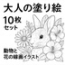 大人の塗り絵セット|動物と花の線画イラスト10枚