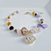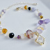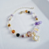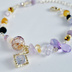 内容物が煌めくワインレッド色のとんぼ玉ビーズと大人っぽい淡いパープル色が素敵なピンクアメジストwithシトリンのミニタンブルの間にキラリと輝くジルコニア風ストーンが綺麗なスクエアチャームをアクセントに合わせました。 更にぷっくり可愛いしずくビーズやチェコビーズなどをそれぞれを絶妙にずらして配置したユニークなデザインがとてもお洒落なブレスレットとなっております☺ メインのお色は大人な秋をイメージしたパープルとトパーズ色の2色、ゴールド金具と合わせて上品で越智壌た色合いでまとめました。 アシンメトリーなデザインだけでも特徴的なこちらのブレスレット、ジルコニア風スクエアチャームを合わせる事によって更に特別感溢れるオリジナリティーたっぷりの作品の仕上げました。 単品でのご着用はもちろん、ゴールド系のバングルやパープルやブラウン、ブラック色などのブレスレットと一緒に重ね着けされるととても素敵だと思います♪ *2月の誕生石としても知られるアメジストは紫色をしており、昔から高貴な色として崇められていました。 愛の守護石と呼ばれるように真実の愛を守るパワーを与えてくれると言われています。 愛情面以外だとストレスで傷ついた心を優しく癒し、やすらぎを与えれてくれるヒーリングストーンとしても知られています。更に直観力を高めてる効果があるとされているので創造性を高めた時に身に着けるのも良いと言われています。 アメジストは他にも… *調和 *癒しと安らぎ *精神安定 *家族円満 などの効果もあると言われています。 他にもシトリンが少し混ざっていますが、ほとんどの部分がアメジストで出来上がっているのでシトリンの効果については割愛させて頂きます。 ※天然石には石によって割れやすいものや、キズなどがついているものが御座います。 出来るだけ作品に使用する石は綺麗なものを選んでおりますが、まれにキズやインクルージョンが含まれているものがございます。 予めご了承頂けます様にお願いいたします。 ☆ピンクアメジスト×シトリンA++(天然石) ミニタンブル 約6~7cm程 ☆とんぼ玉ビーズ ワインレッド ボタンカット 10mm ☆しずく型チェコビーズ オーキッドパープル1 9x6mm ☆しずく型チェコビーズ アメジストラスター 9x6mm ☆ファイアポリッシュチェコビーズ 透明感のあるレモン ダークトパーズ 6mm ☆ファイアポリッシュチェコビーズ 不透明ホワイト まだら感のあるラベンダー 6mm ☆ガラスビーズ フルコートゴールド ボタンカット 6mm ☆ガラスビーズ オペークブラック ボタンカット 6mm ☆ガラスビーズ オペークパープル ボタンカット 6mm ☆ガラスビーズ ライトパープルオーロラ ボタンカット 4mm ☆ガラスビーズ フルコートゴールド ボタンカット 4mm ☆ガラスビーズ ライラックオーロラ ボタンカット 4mm ☆ガラスビーズ ジェット ラウンド型 4mm玉 ☆チェコビーズ シャンパンゴールド ラウンド型 4mm玉 ☆ガラスビーズ ☆ジルコニア風スクエアチャーム 8mm ☆座金 ゴールド ☆メタルビーズ ゴールド ☆丸カン ☆9ピン ☆アジャスター ☆カニカン 長さは約22.5cmとなっております。(5cm程のアジャスターを含む)