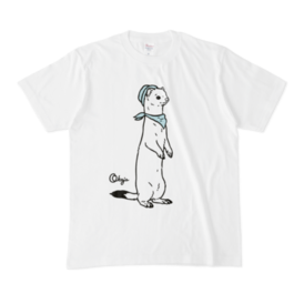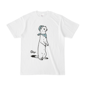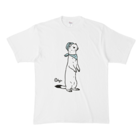 Tシャツ - XL - 白ポークパイハットとバンダナを身に着けた、おしゃれなおこじょくんです♪
