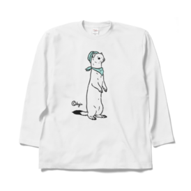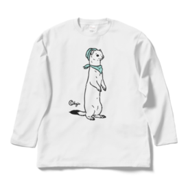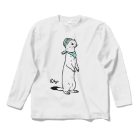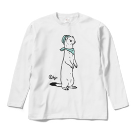 ロングスリーブTシャツ - XL - ホワイトポークパイハットとバンダナを身に着けた、おしゃれなおこじょくんです♪